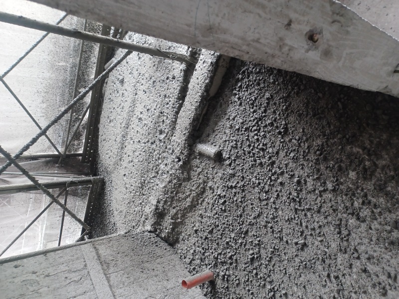 建物の型枠解体、バルコニーのグラウト注入、資材の整理