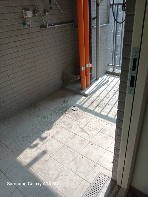 国安一期社会住宅 - 室内粉じん除去・壁面・床面・手すり・バルコニーのモルタル除去・復元工事