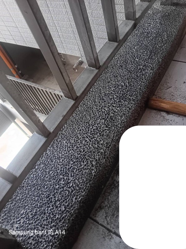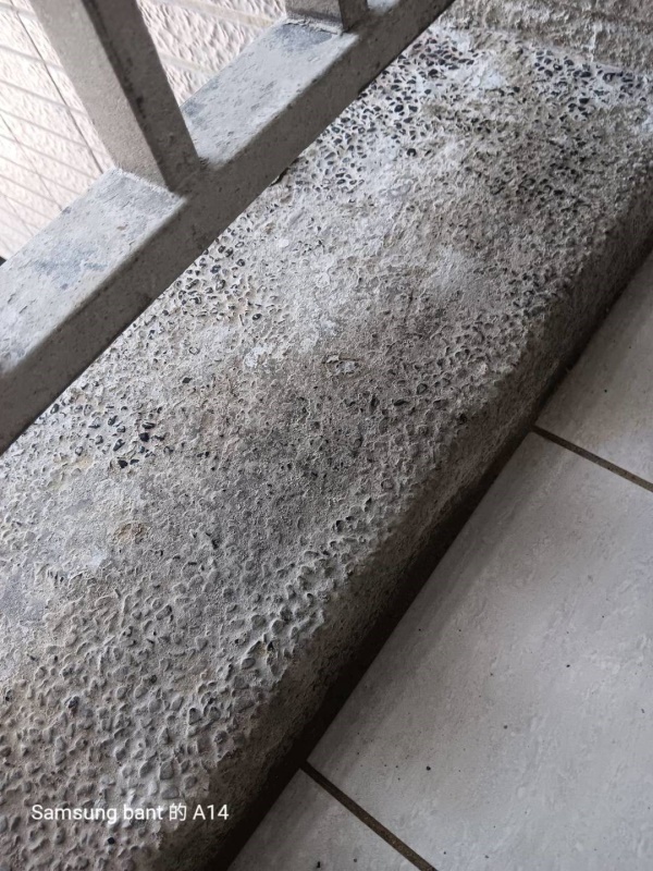 国安一期社会住宅 - 床タイルの変色および洗い出し仕上げがコンクリートモルタルで覆われた部分の復原工事