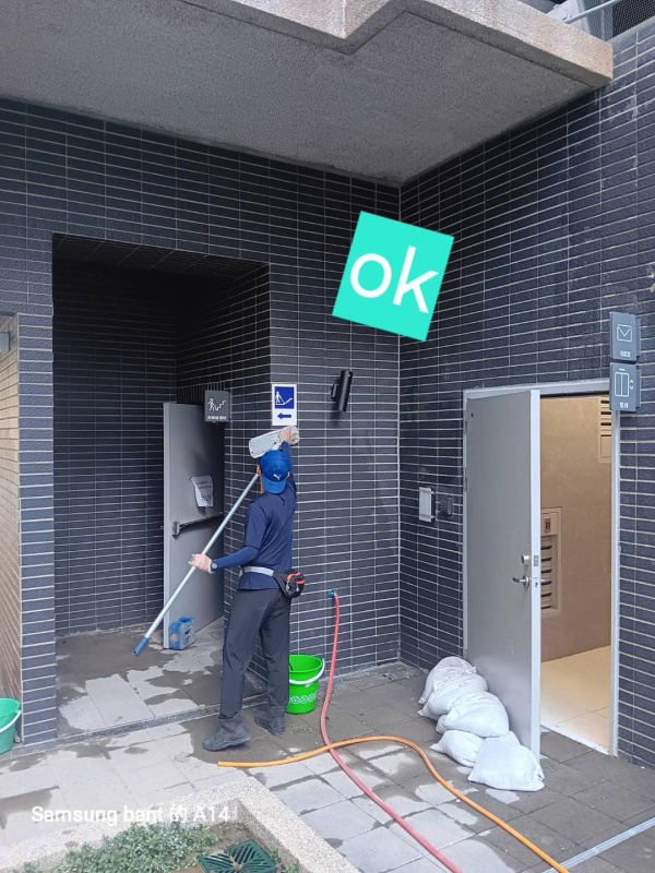 国安一期社会住宅 - 1F 共用施設・建物外壁・ガラス・床面・手すりのモルタル除去・復元工事