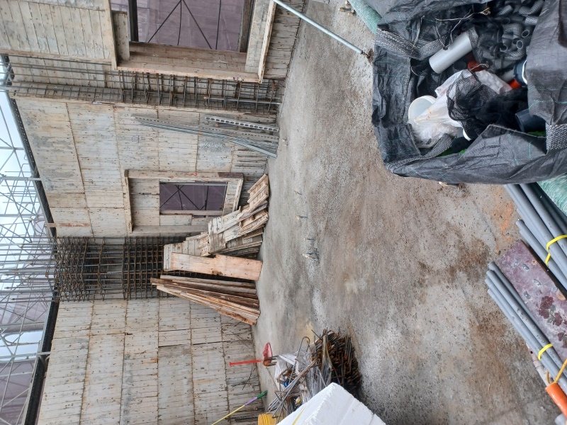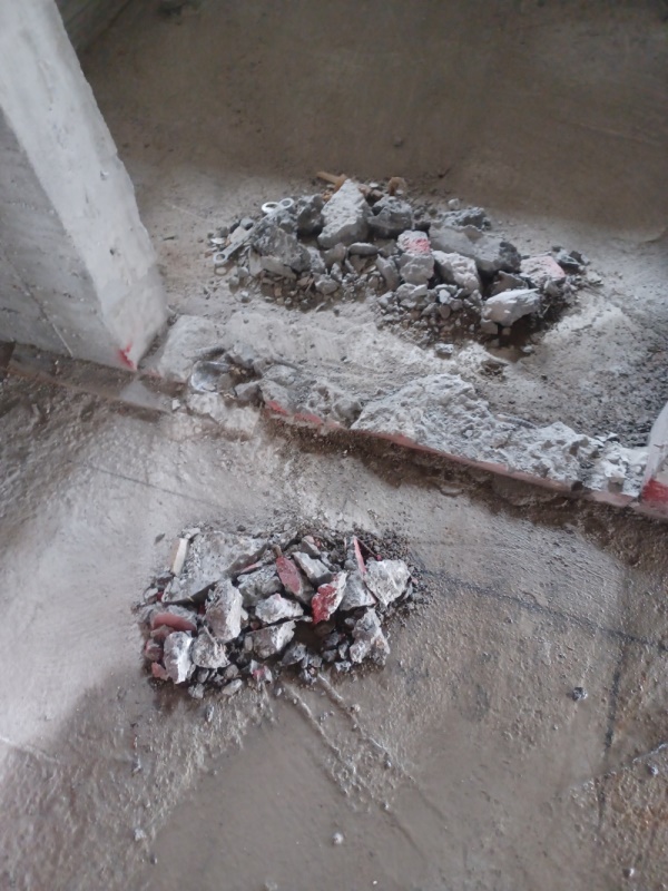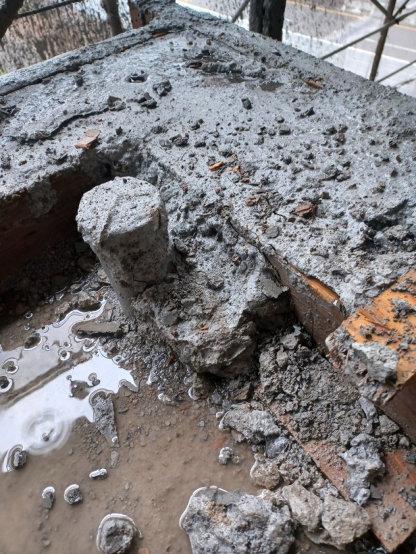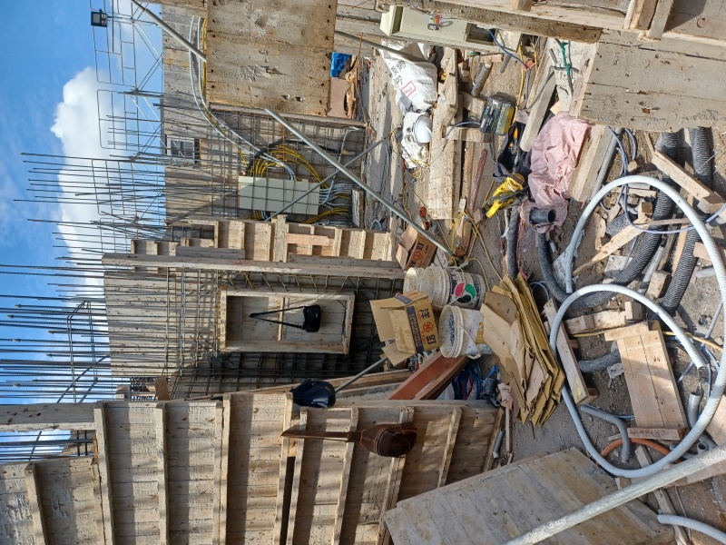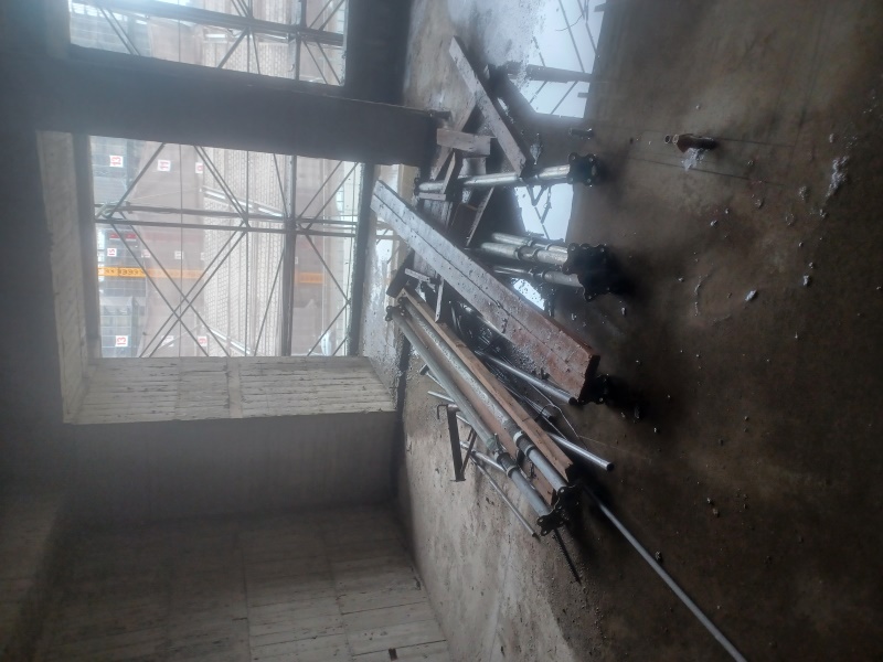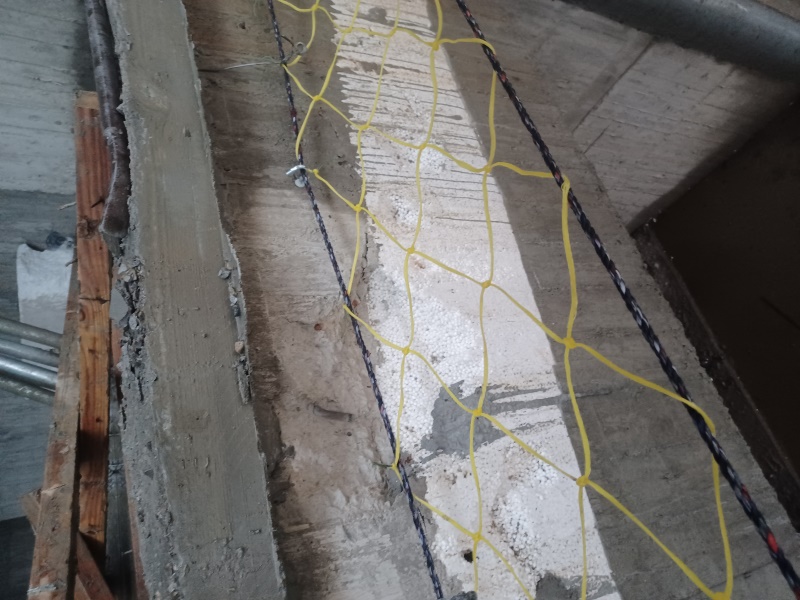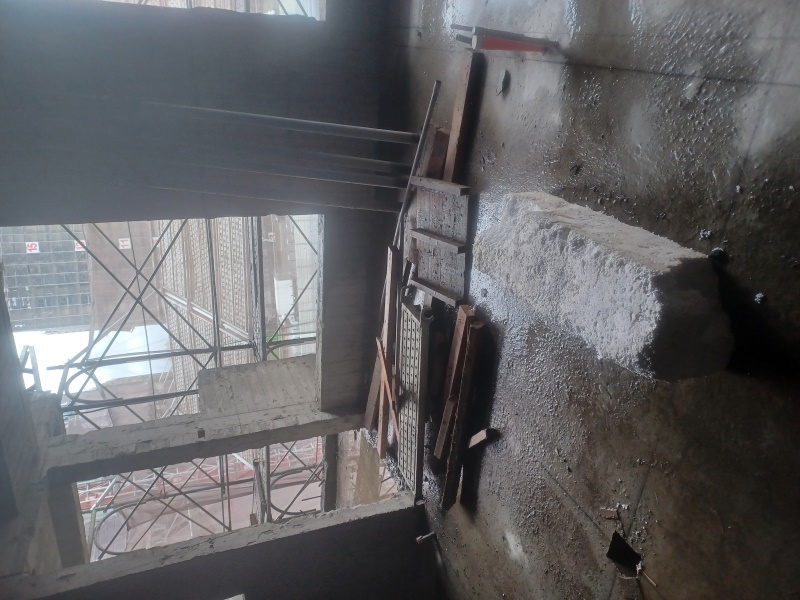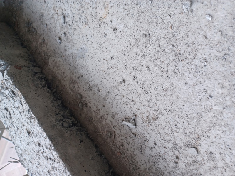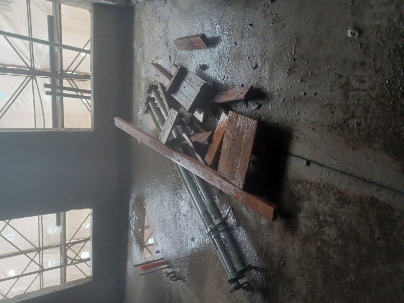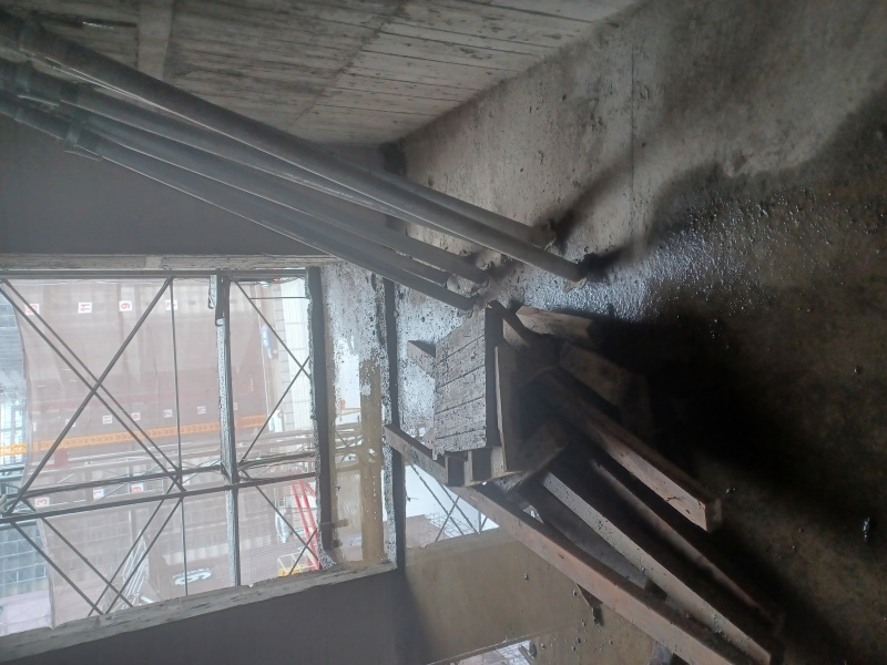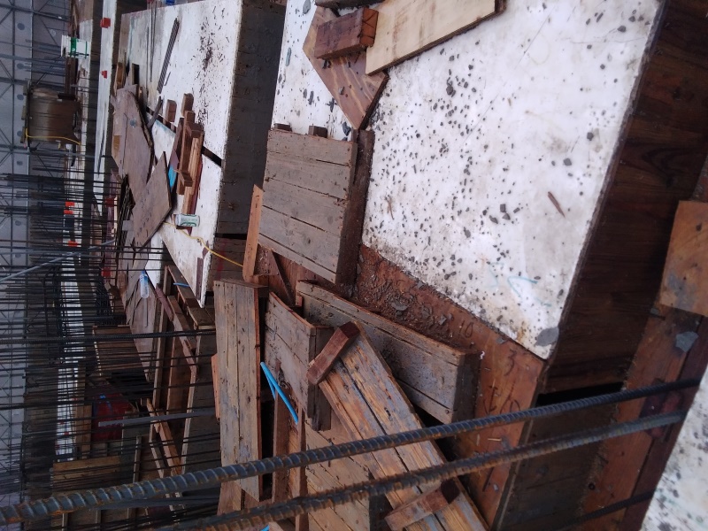 建物の型枠解体、バルコニーのグラウト注入、資材の整理