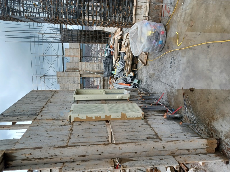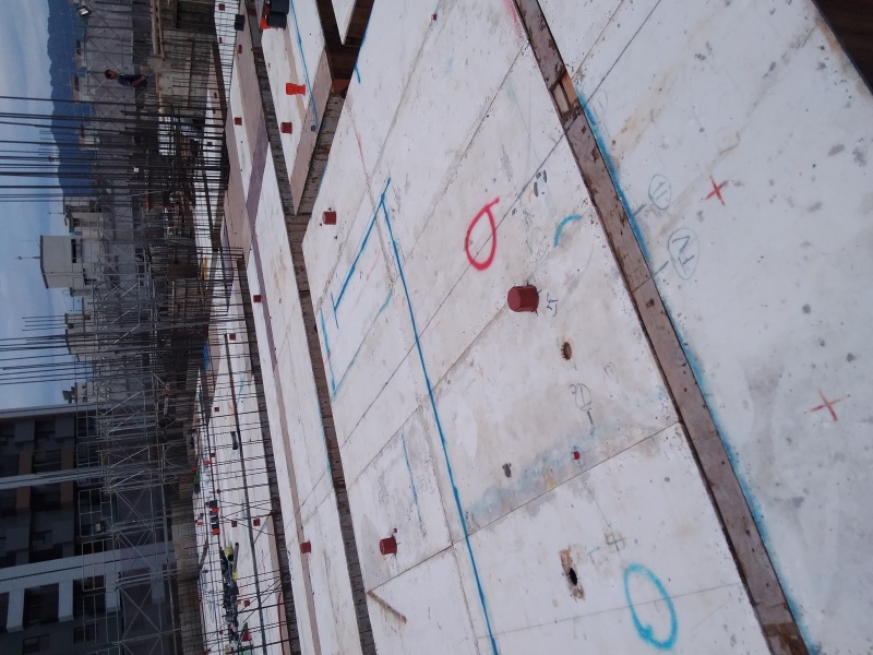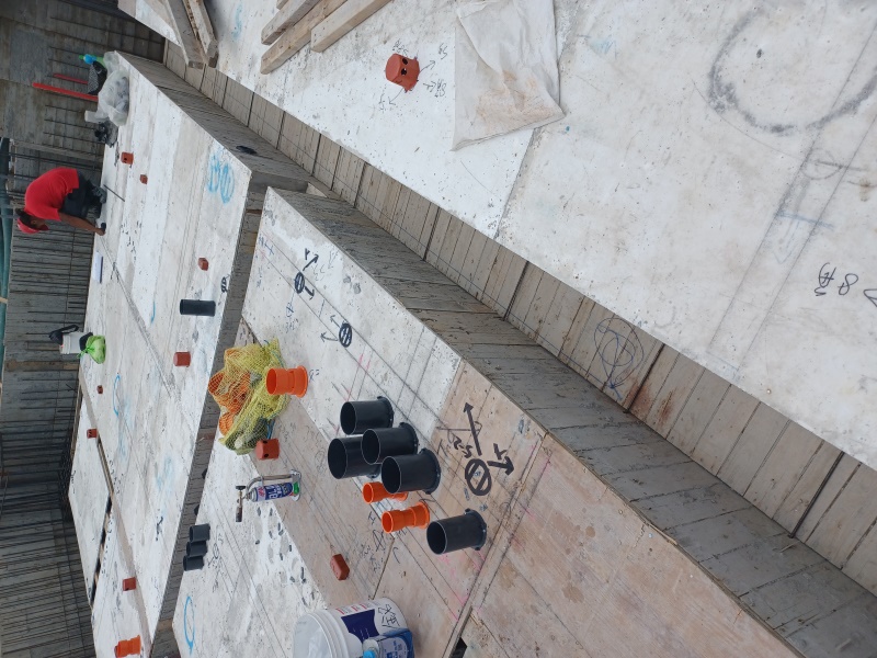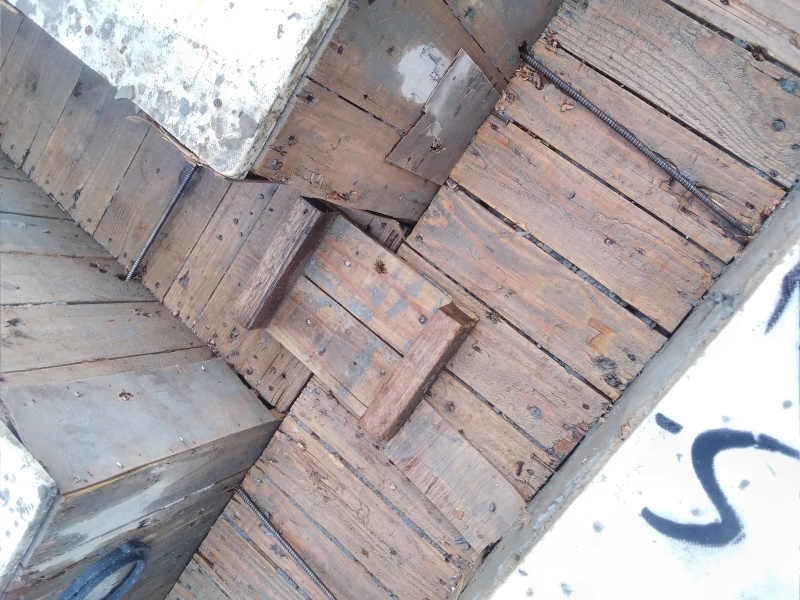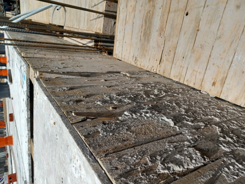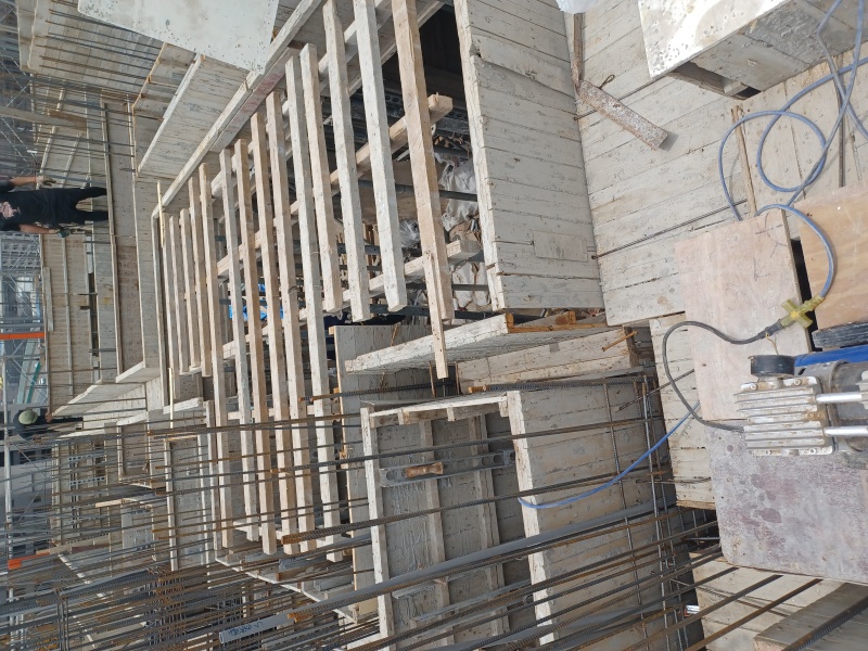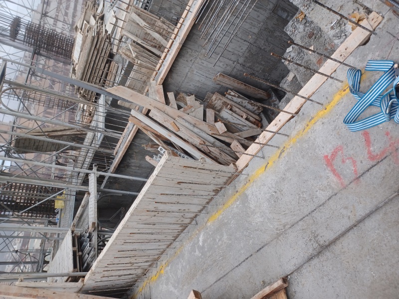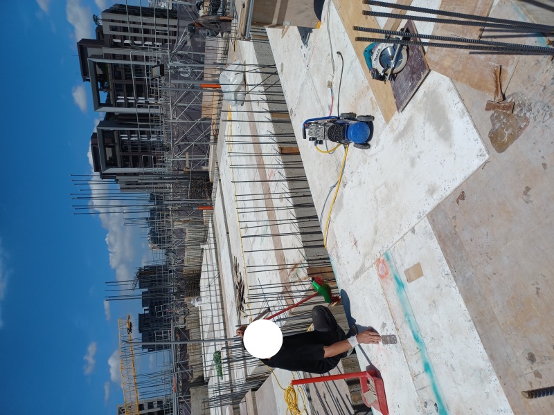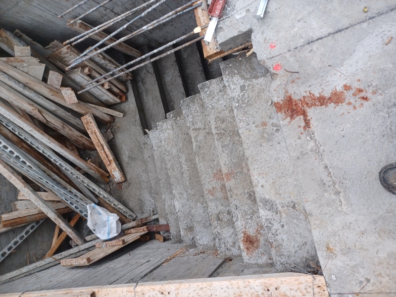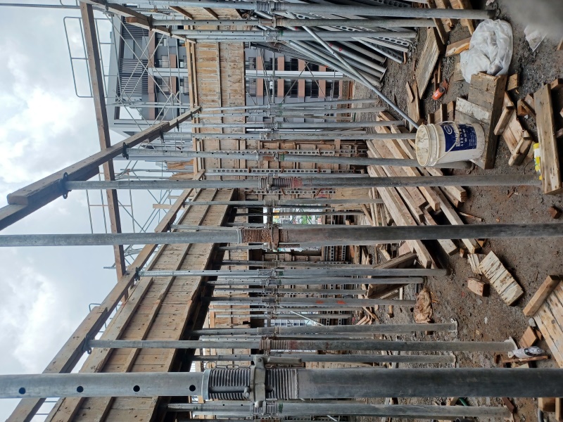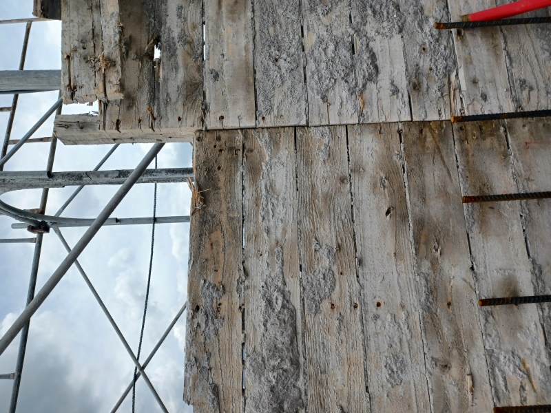建物の型枠解体、バルコニーのグラウト注入、資材の整理