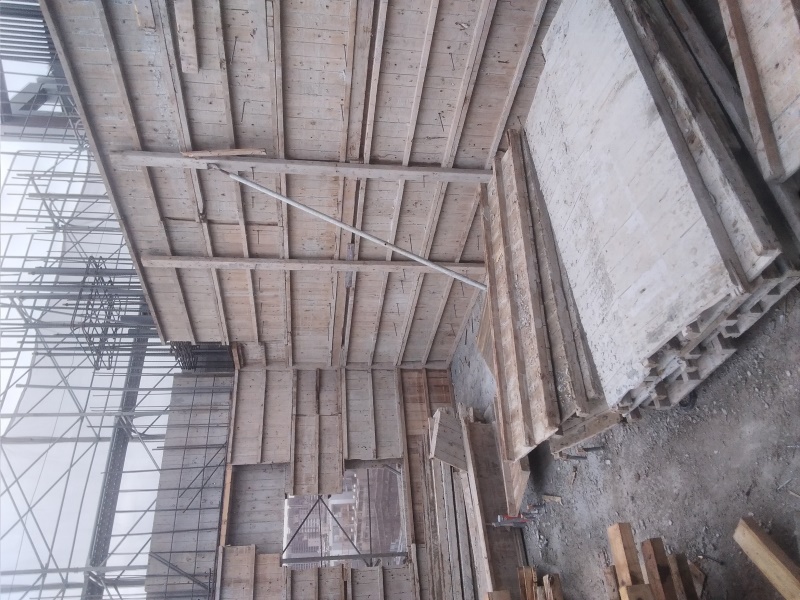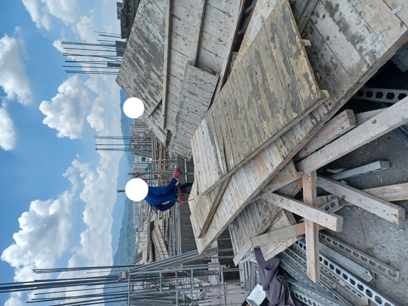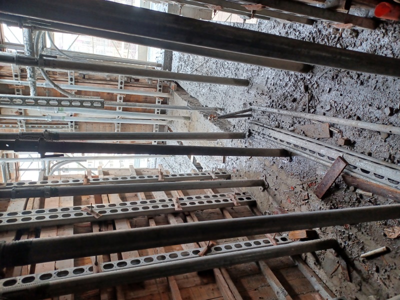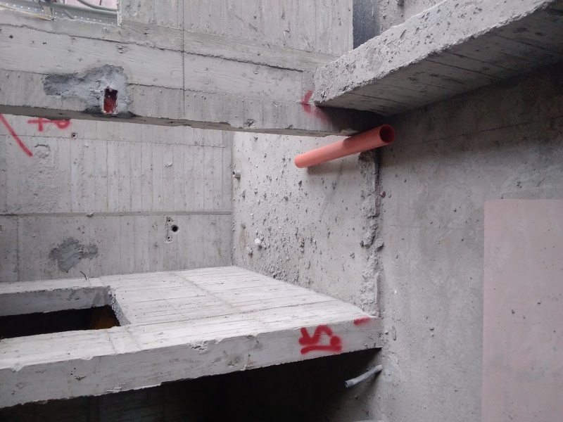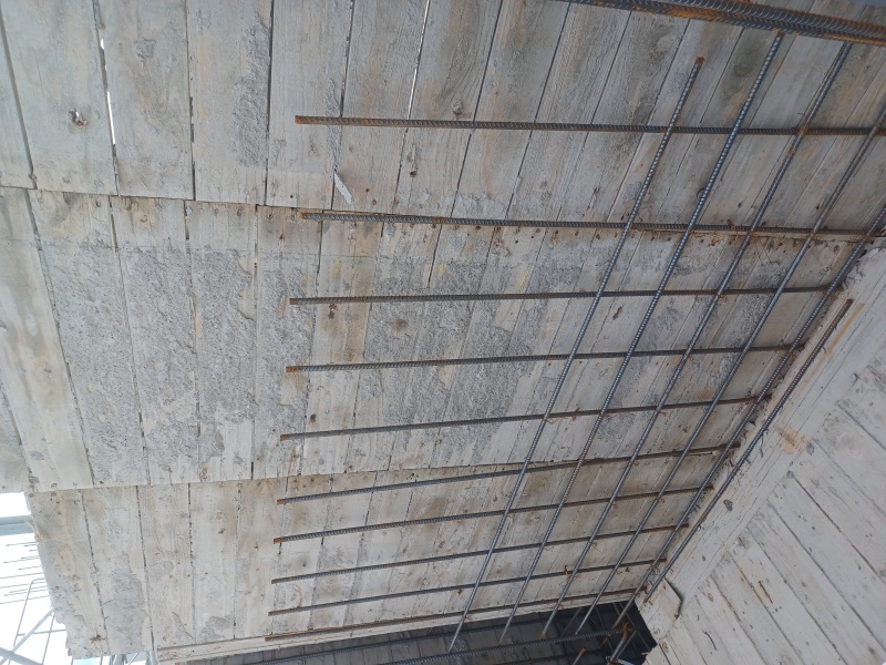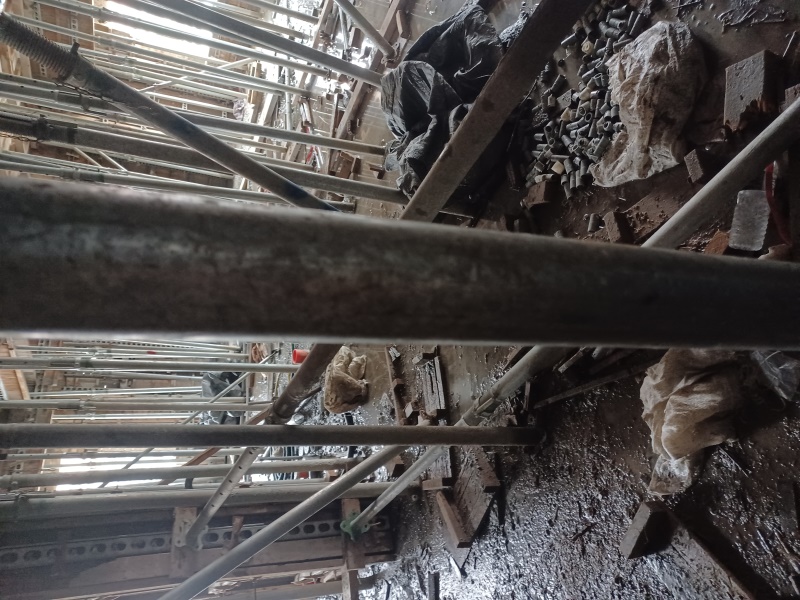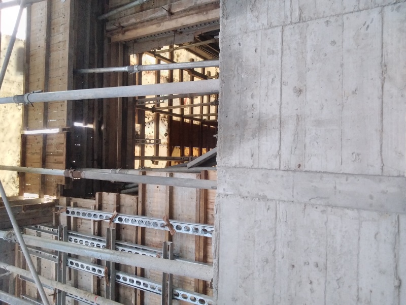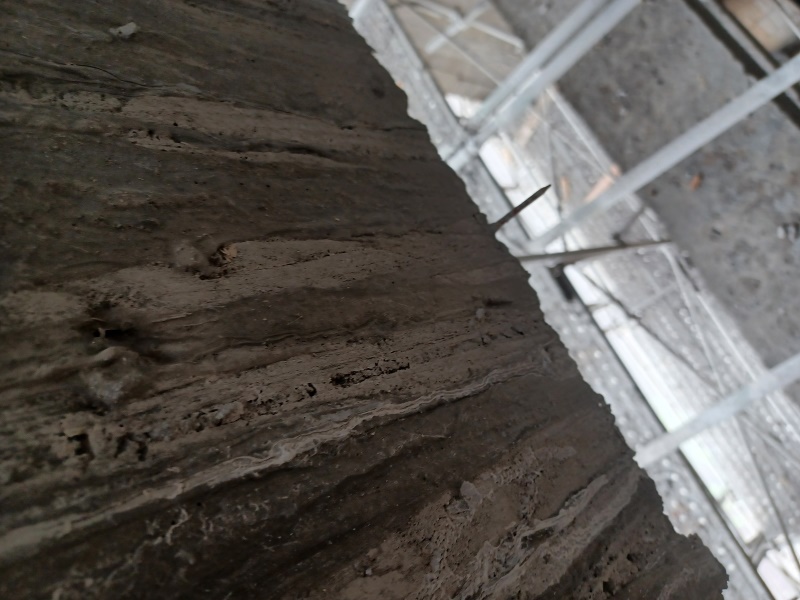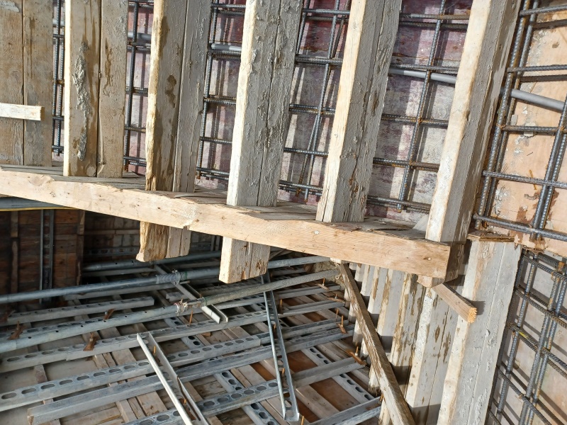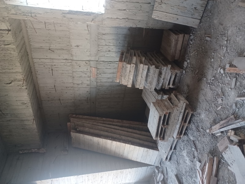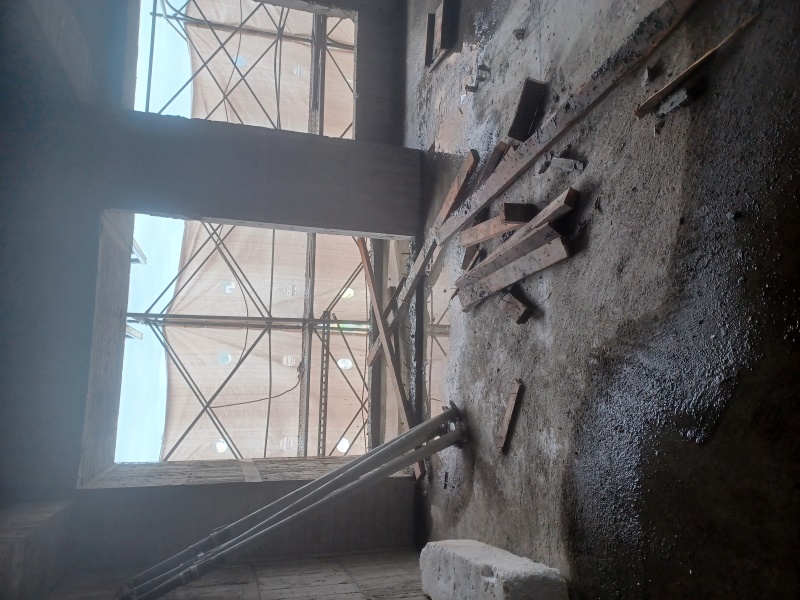 建物の型枠解体、バルコニーのグラウト注入、資材の整理