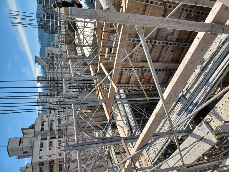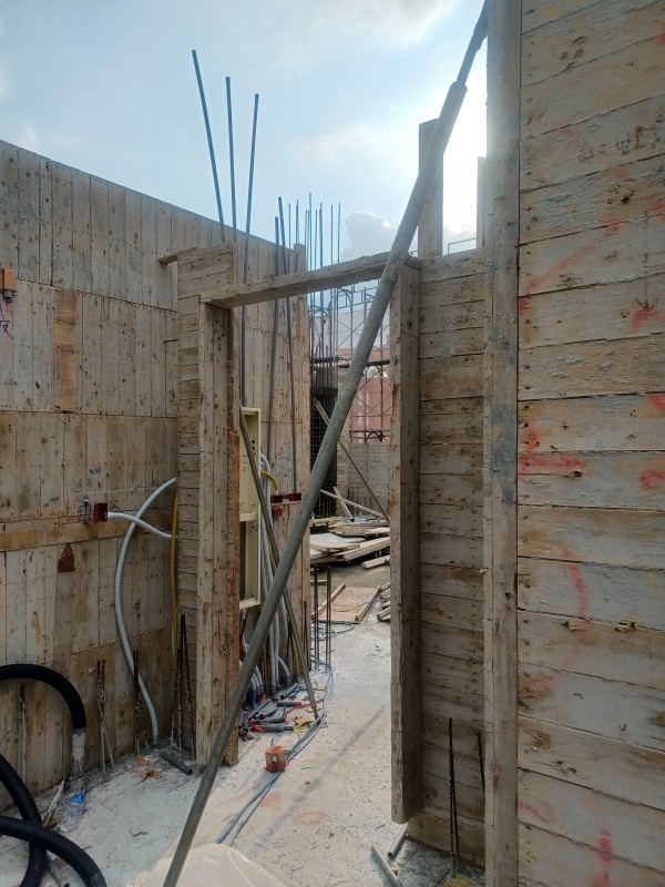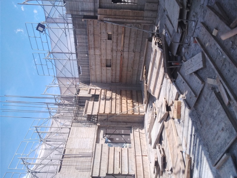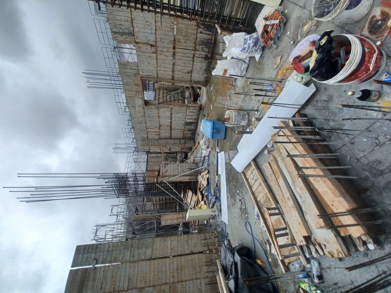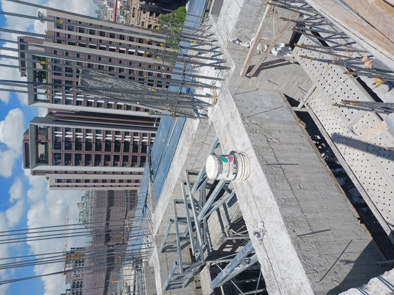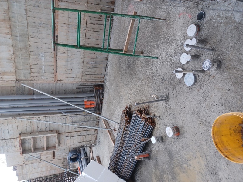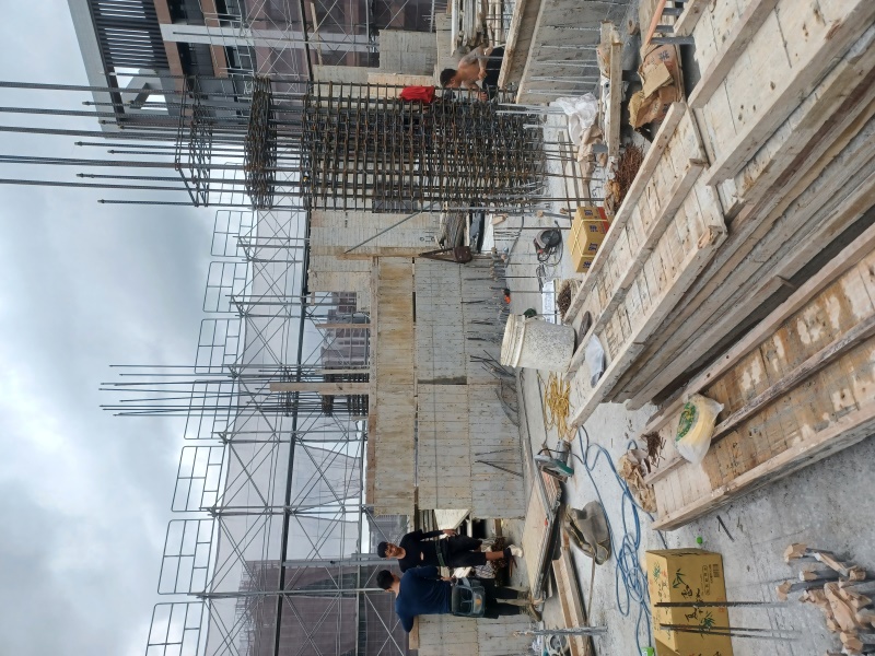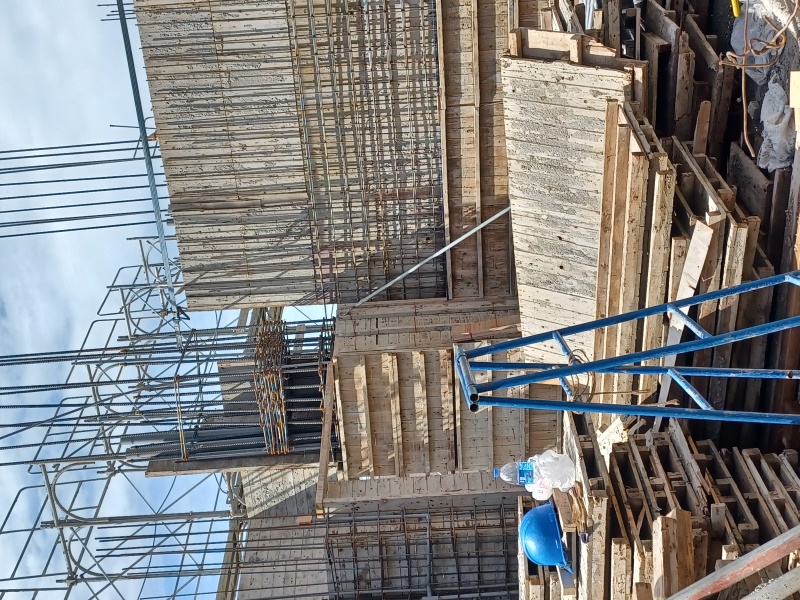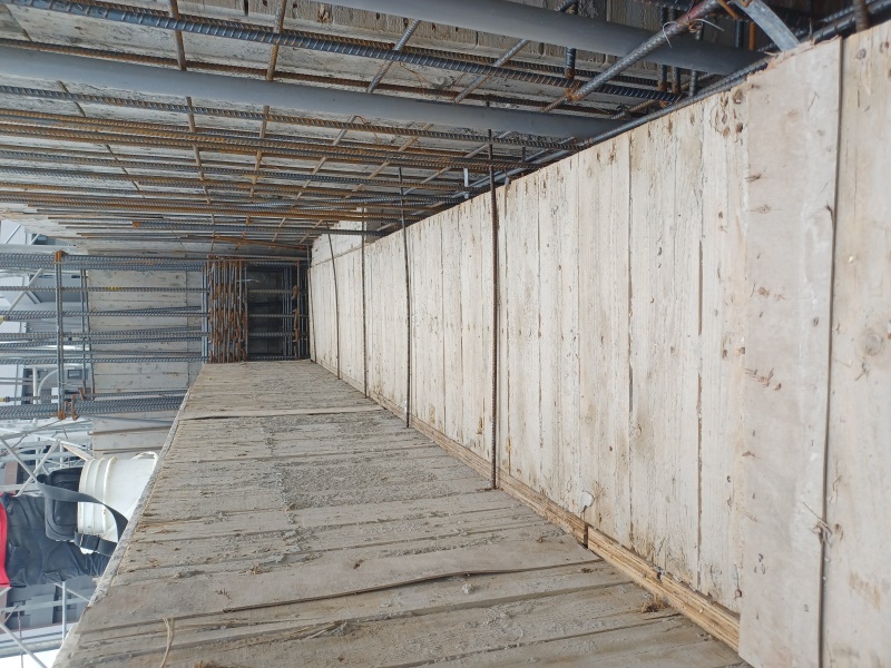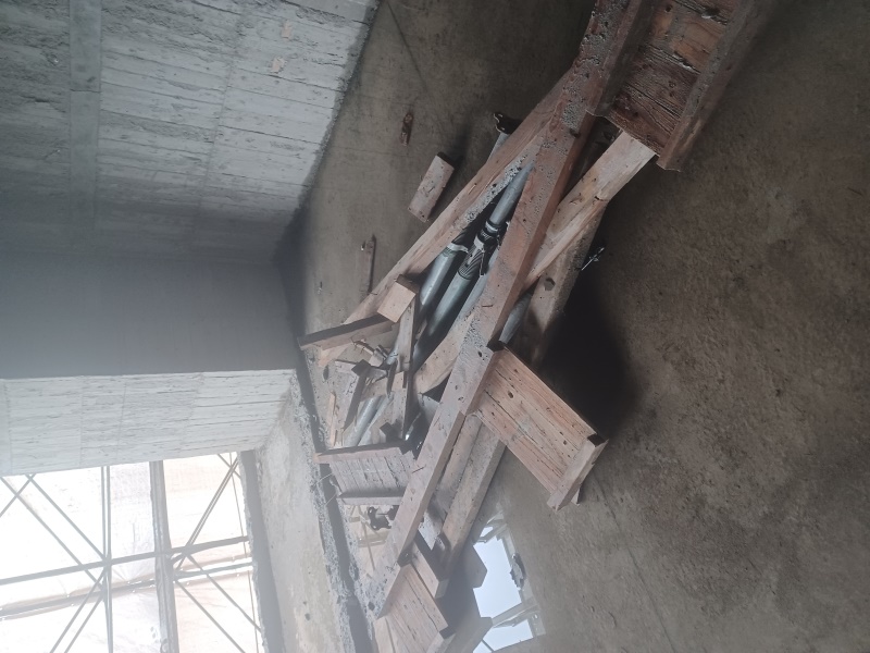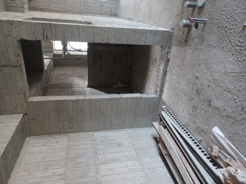 建物の型枠解体、バルコニーのグラウト注入、資材の整理
