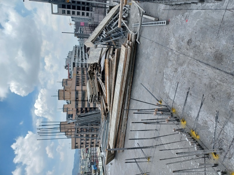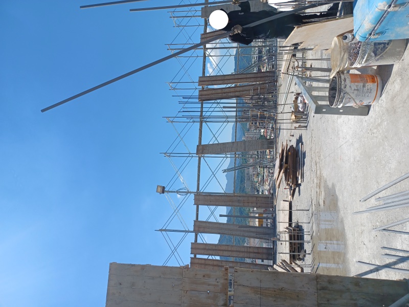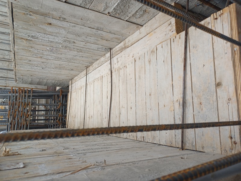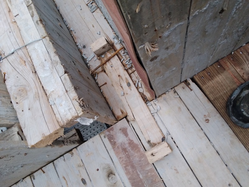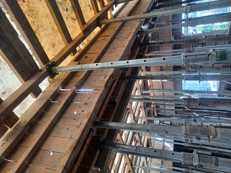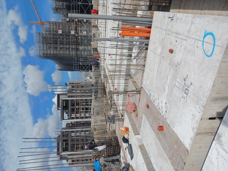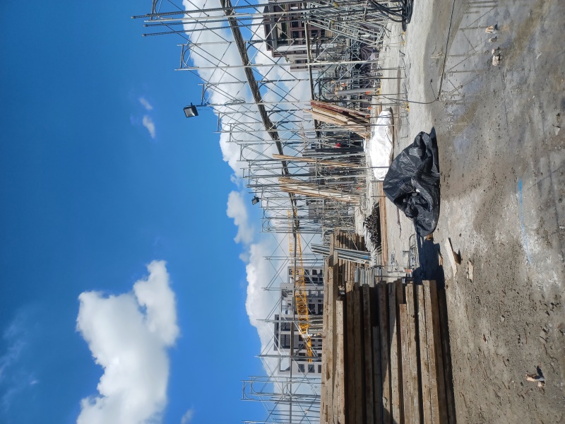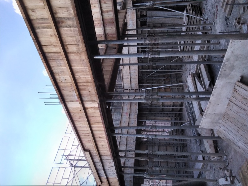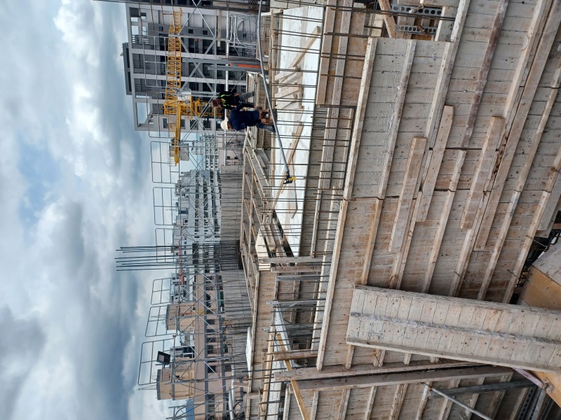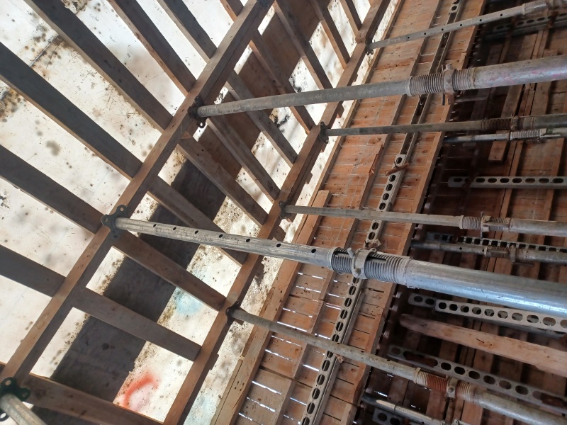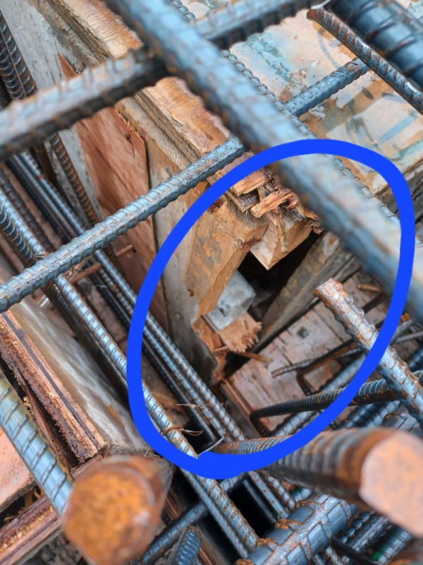 建物の型枠解体、バルコニーのグラウト注入、資材の整理