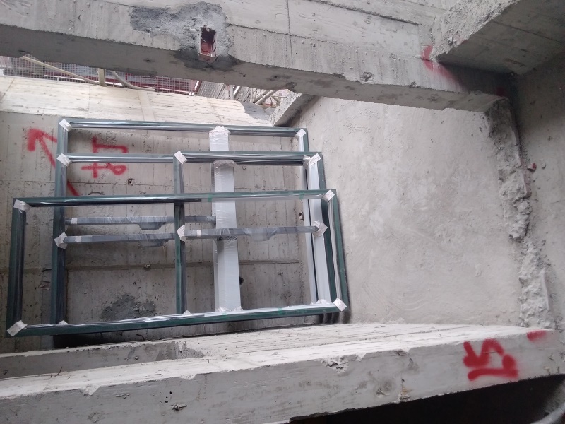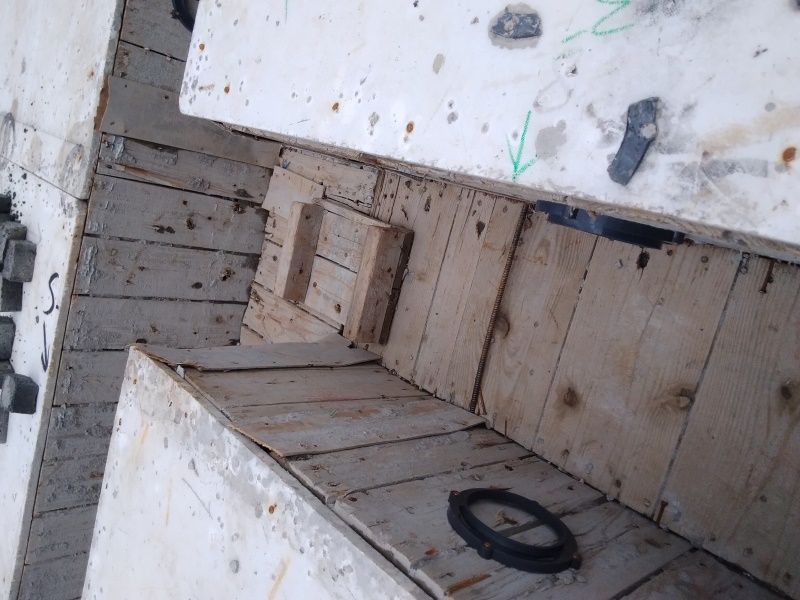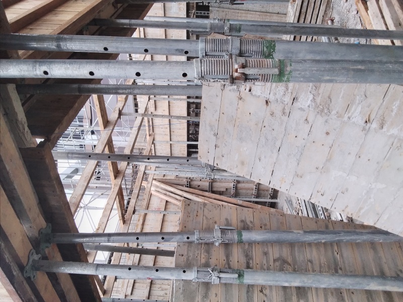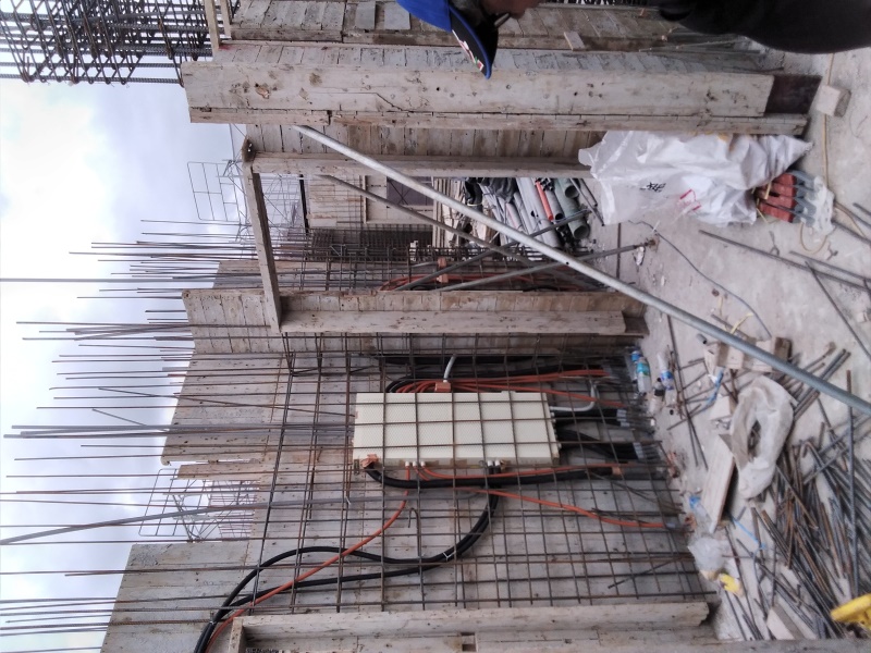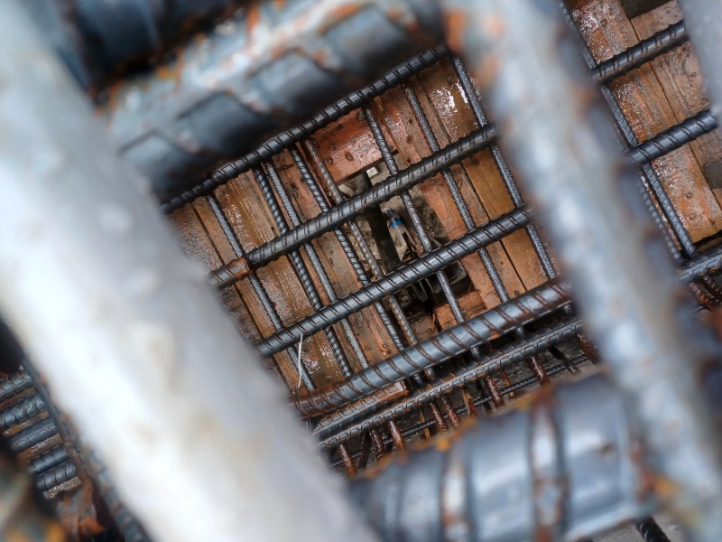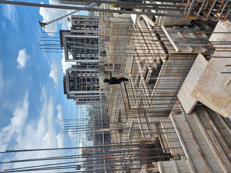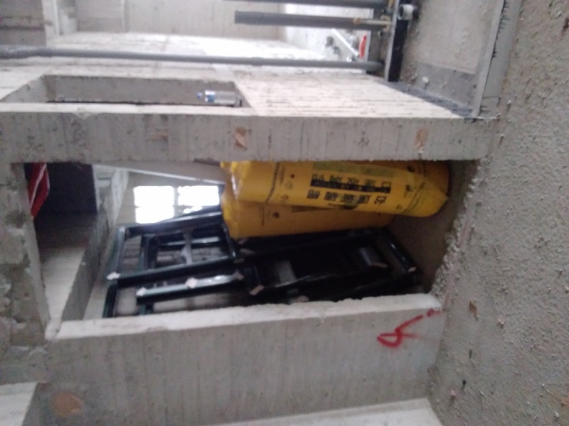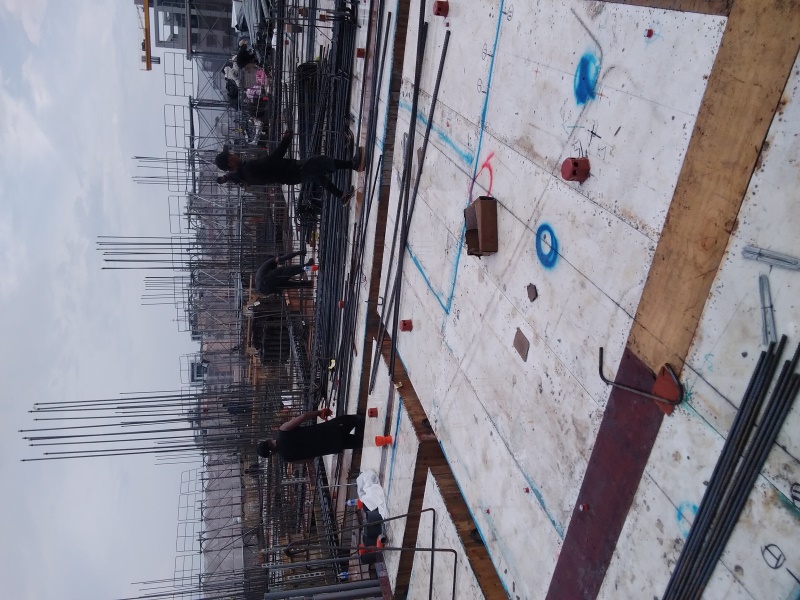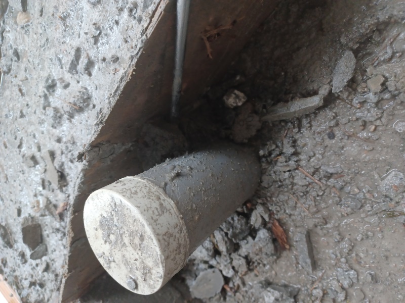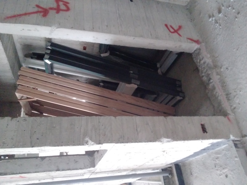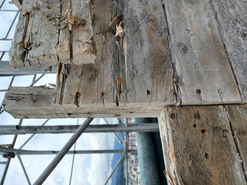 建物の型枠解体、バルコニーのグラウト注入、資材の整理