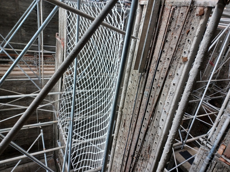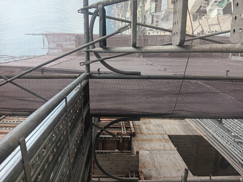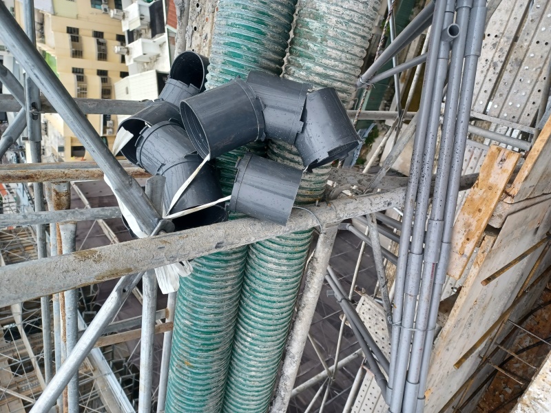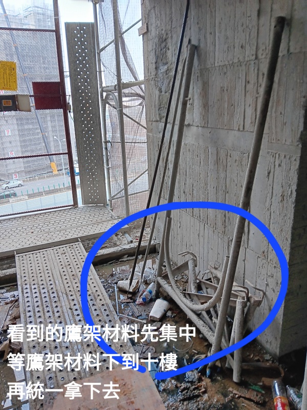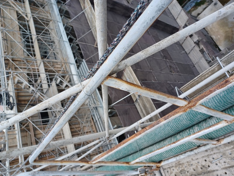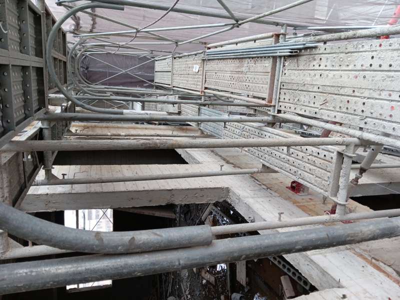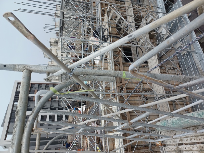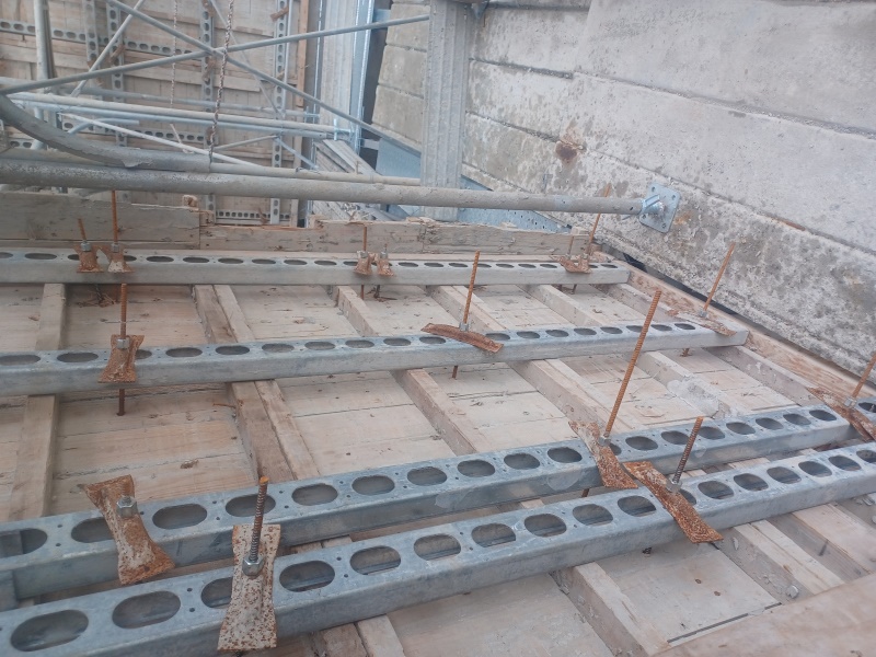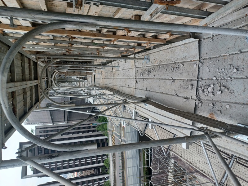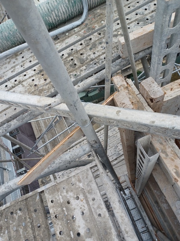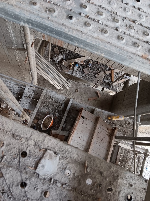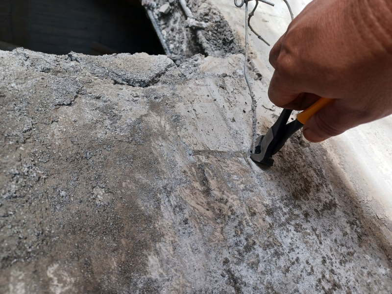 建物の型枠解体、バルコニーのグラウト注入、資材の整理