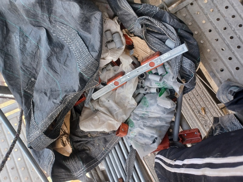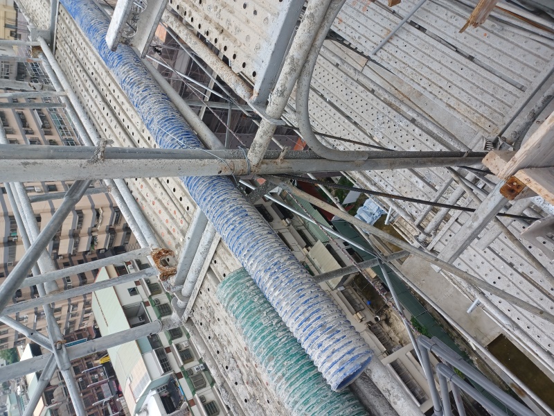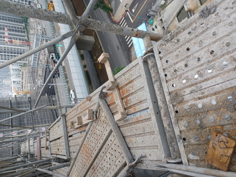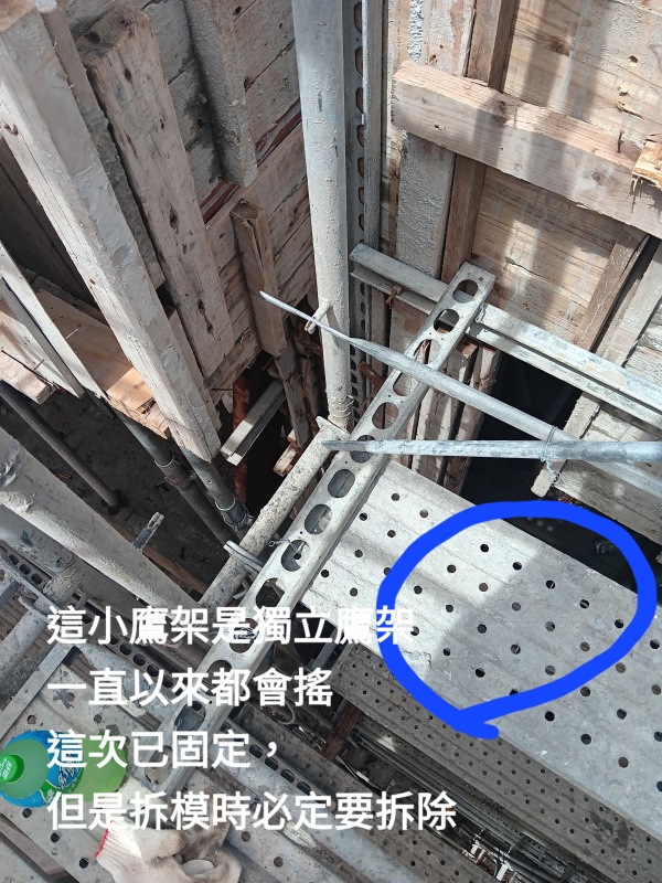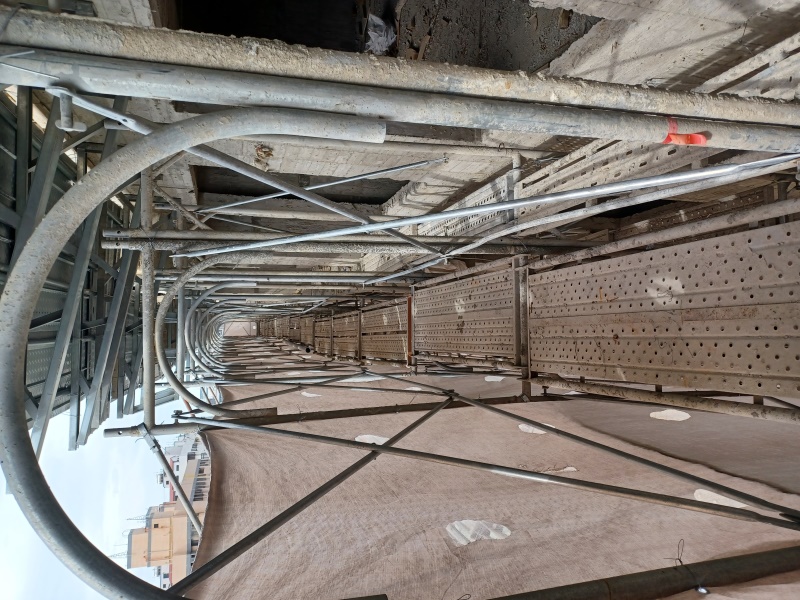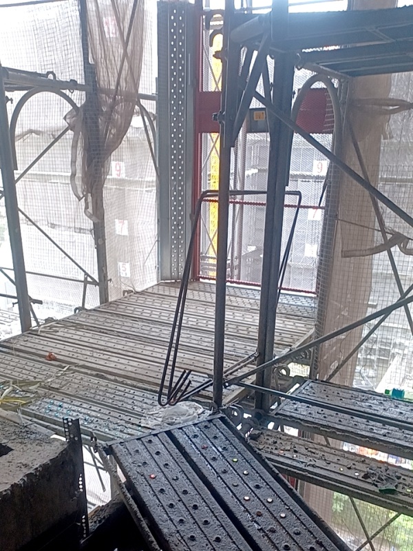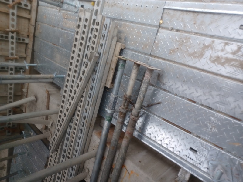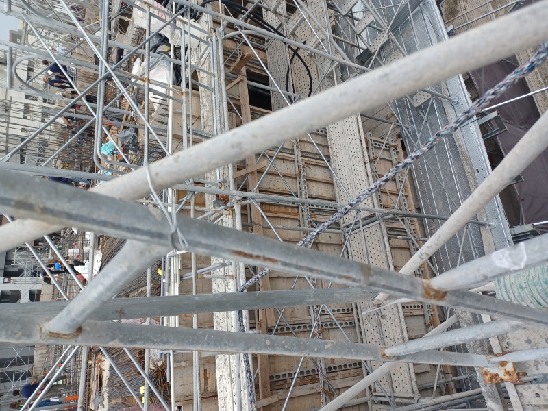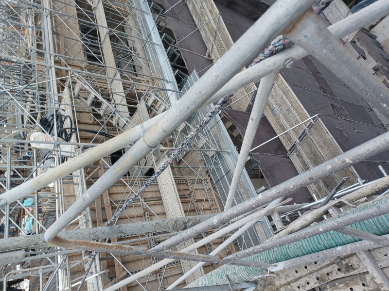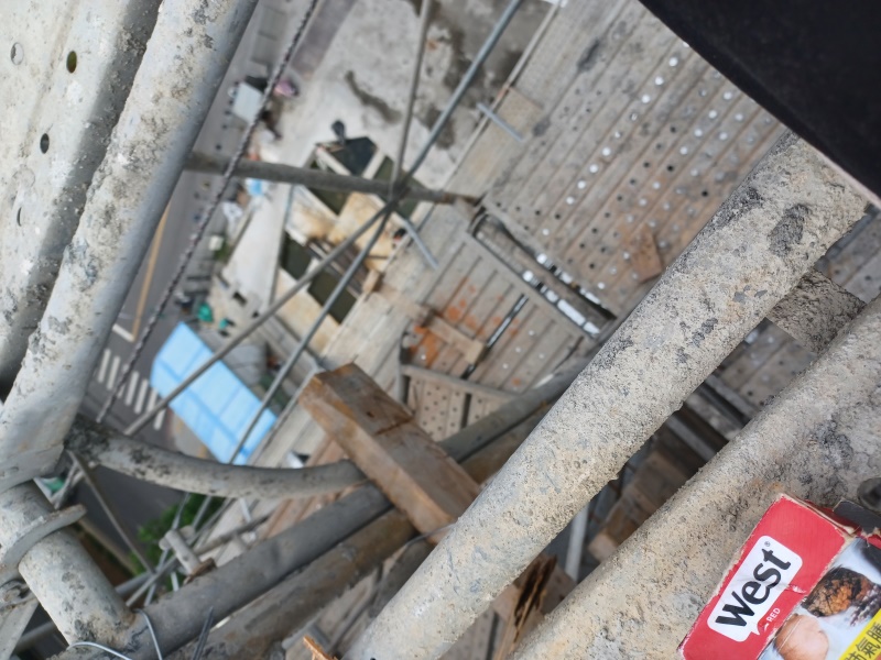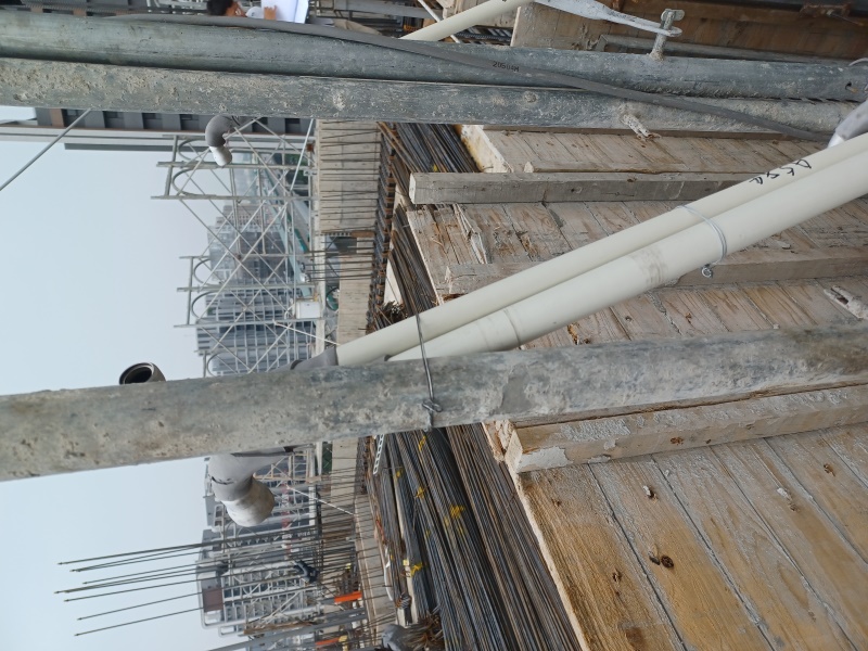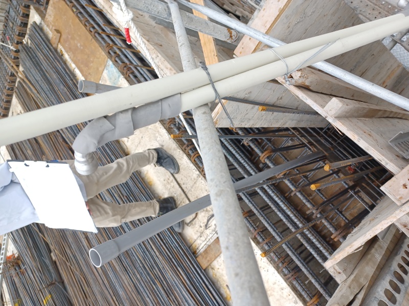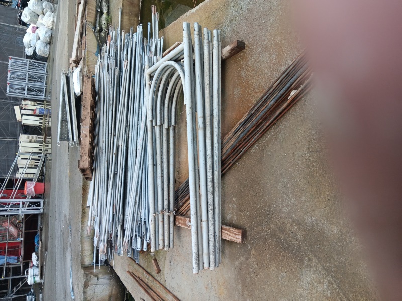 建物の型枠解体、バルコニーのグラウト注入、資材の整理