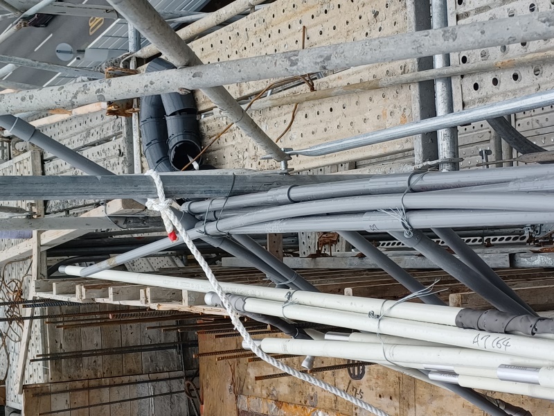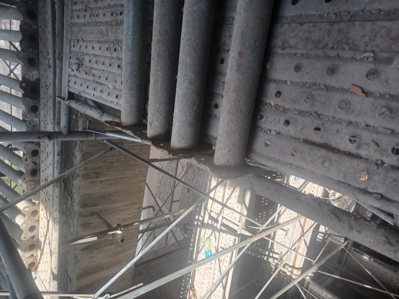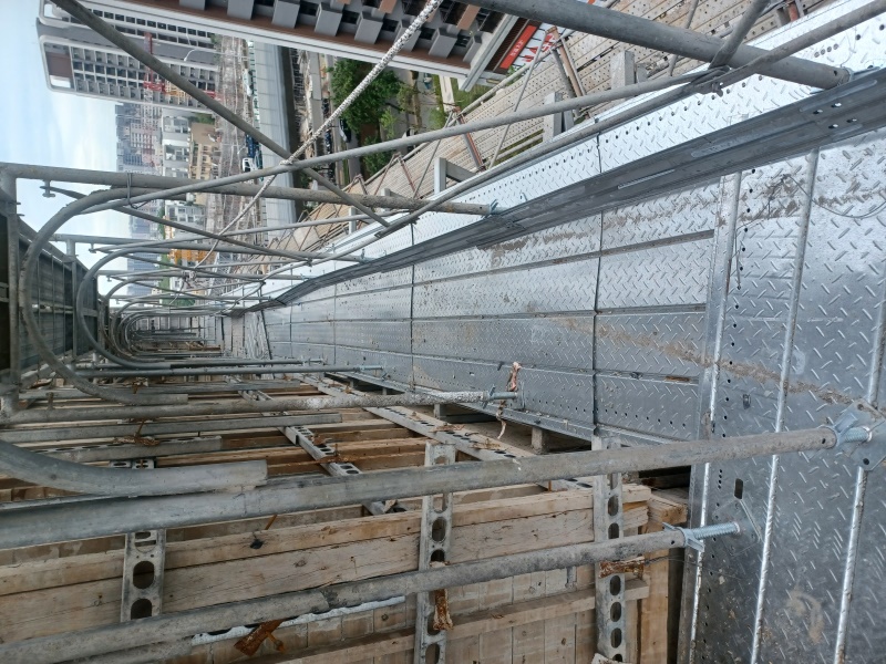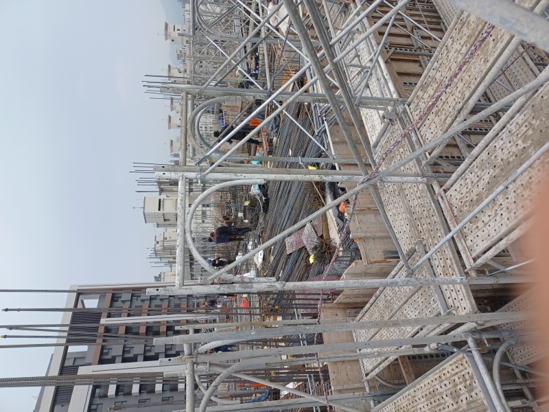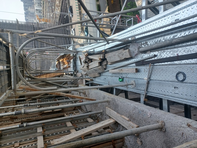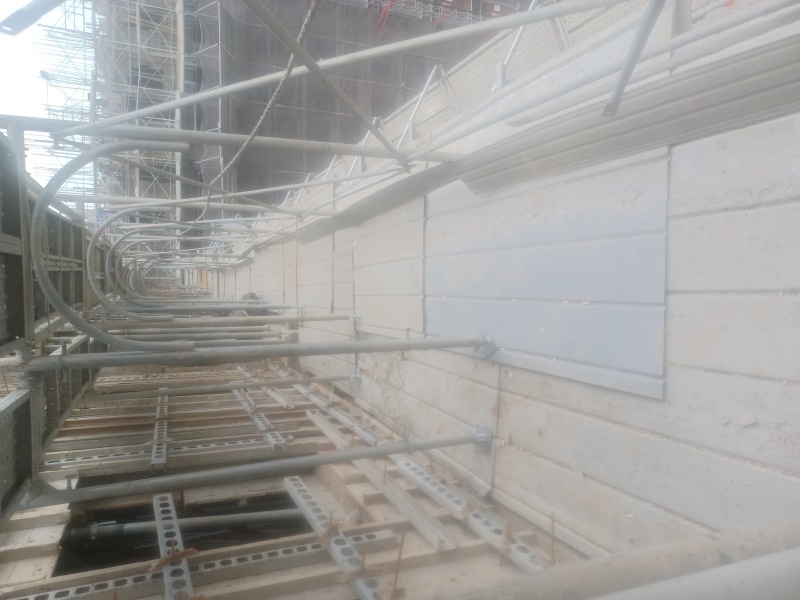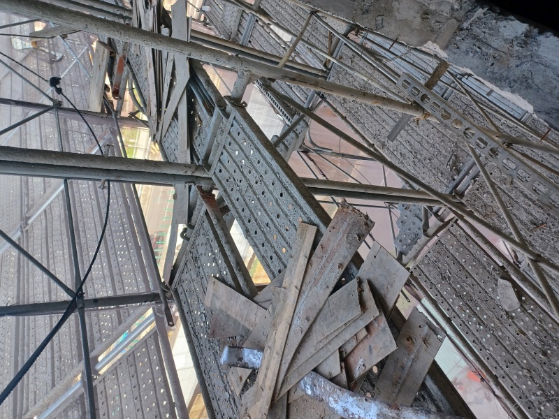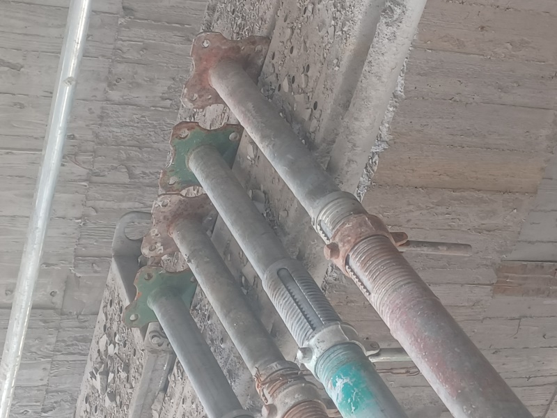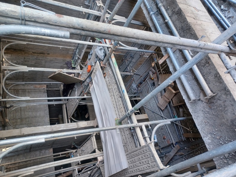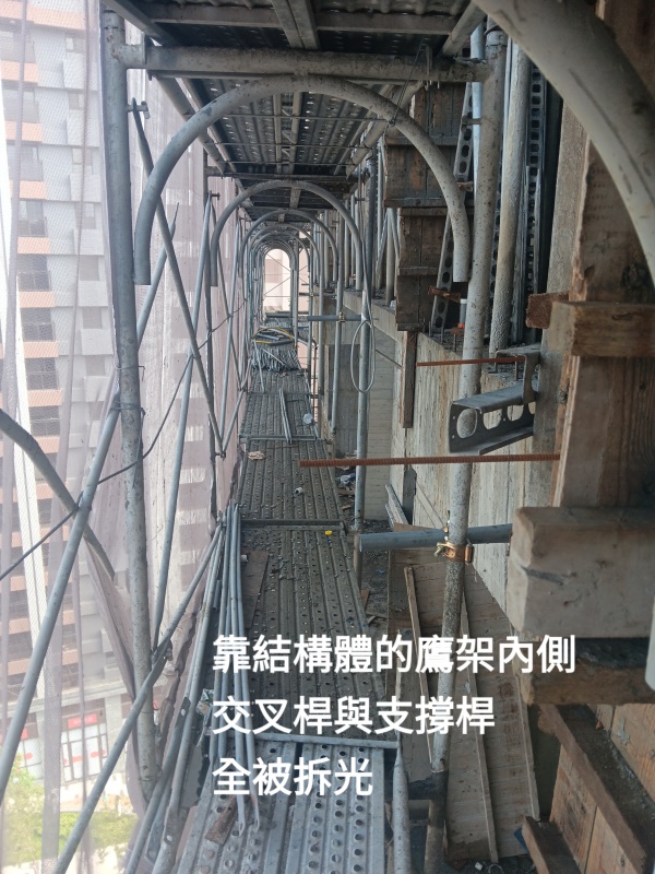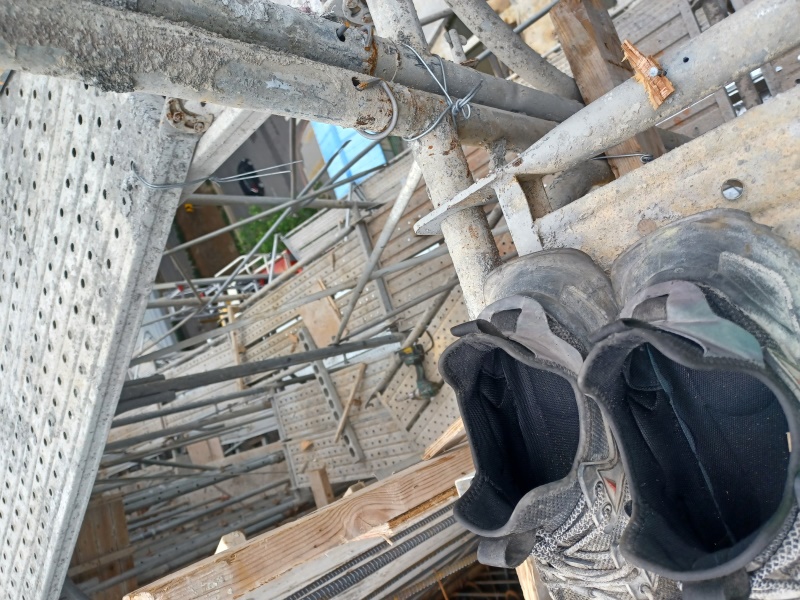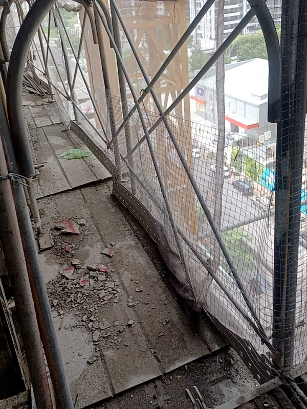 建物の型枠解体、バルコニーのグラウト注入、資材の整理
