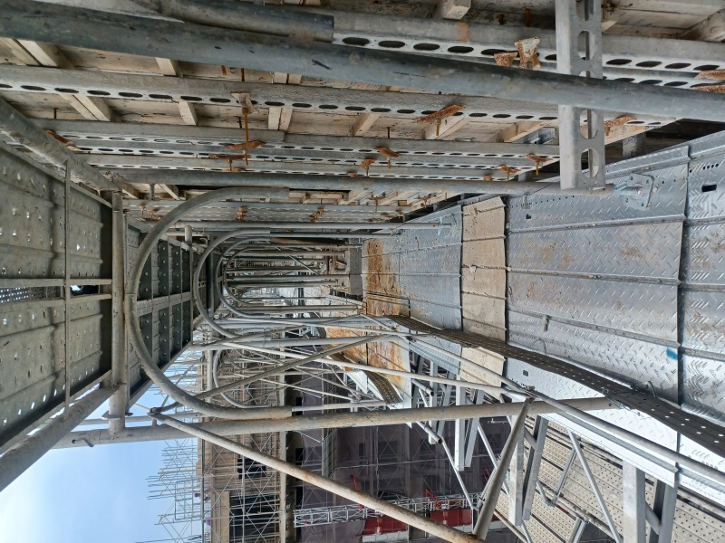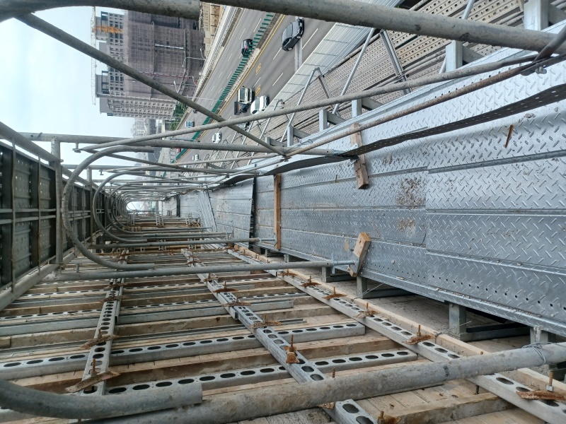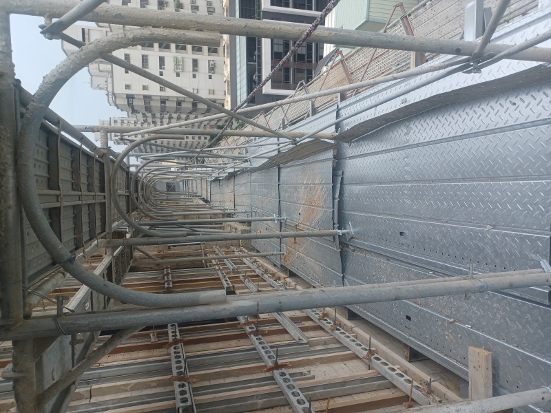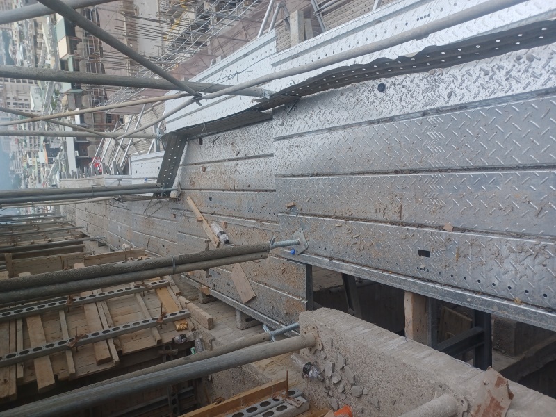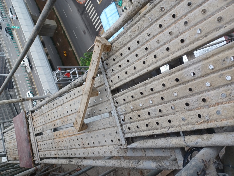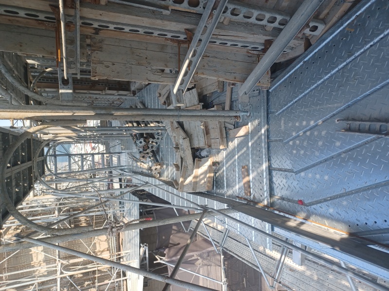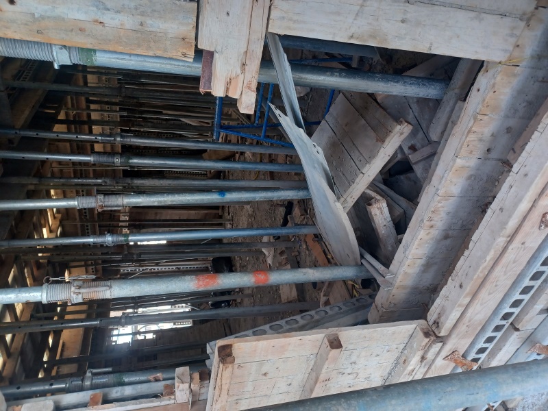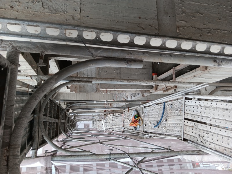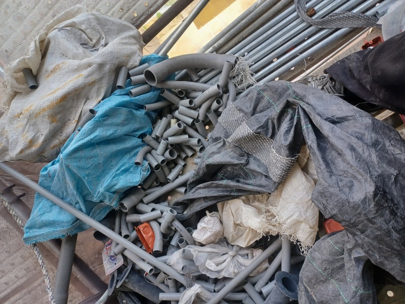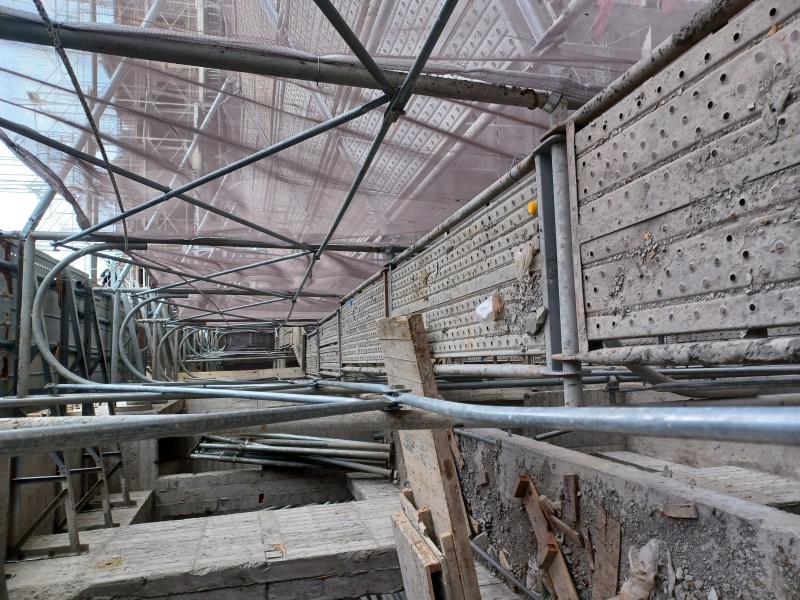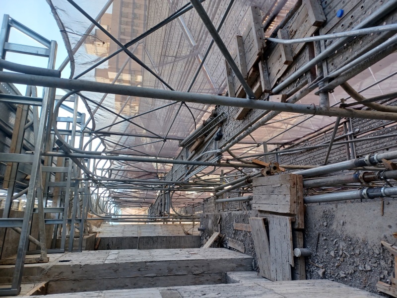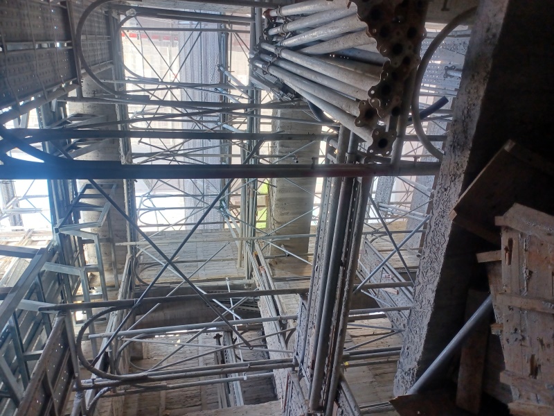 建物の型枠解体、バルコニーのグラウト注入、資材の整理